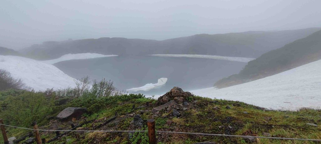 一瞬雲が切れ、ミクリガ池が見えることもありました。