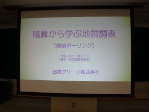令和7年11月27日に「積算から学ぶ地質調査」と題して、中国地方整備局 松江国道事務所の職員の方を対象に研修会を行いました。